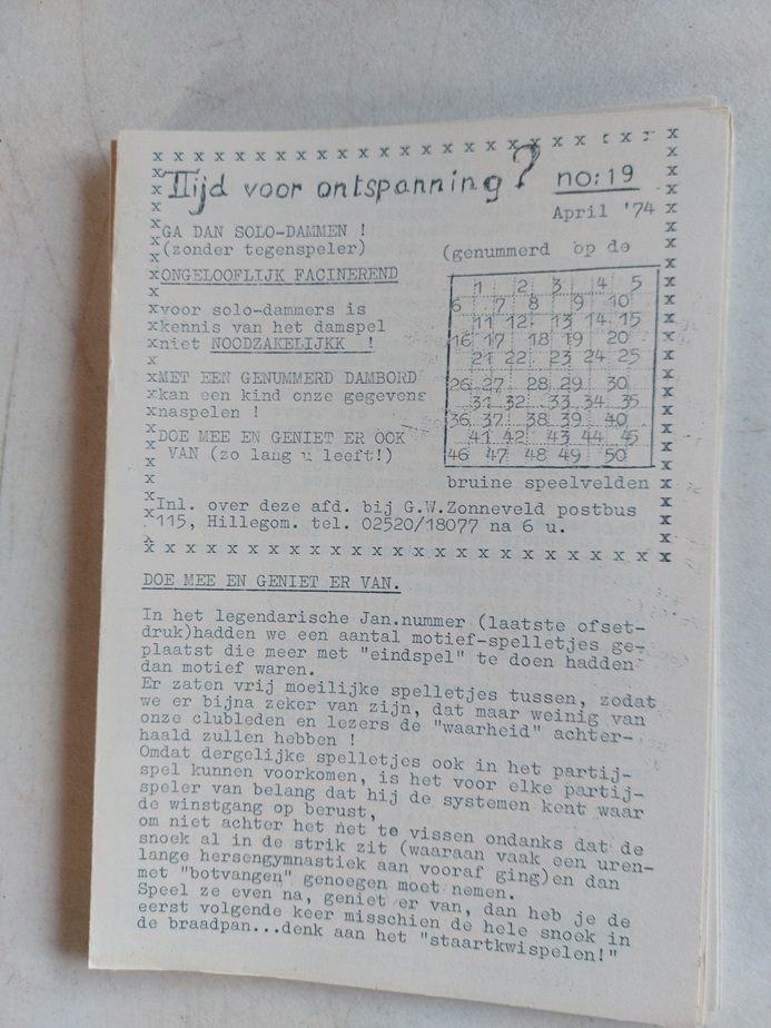 damrubrieken gepubliceerd vanaf 18 mei 1974 t/m 4