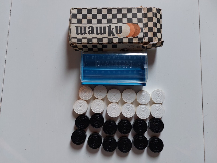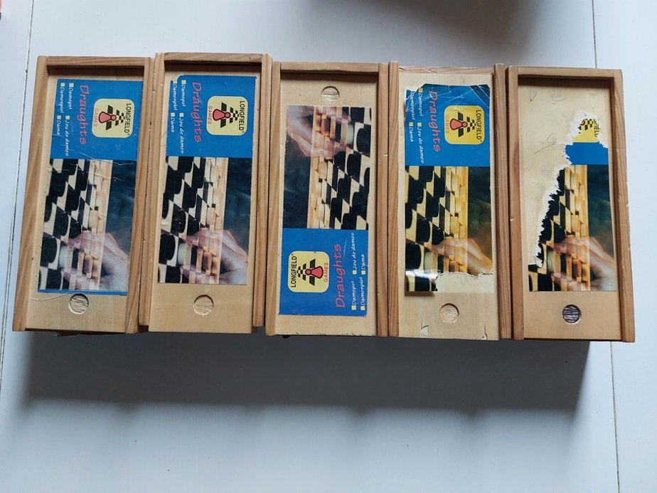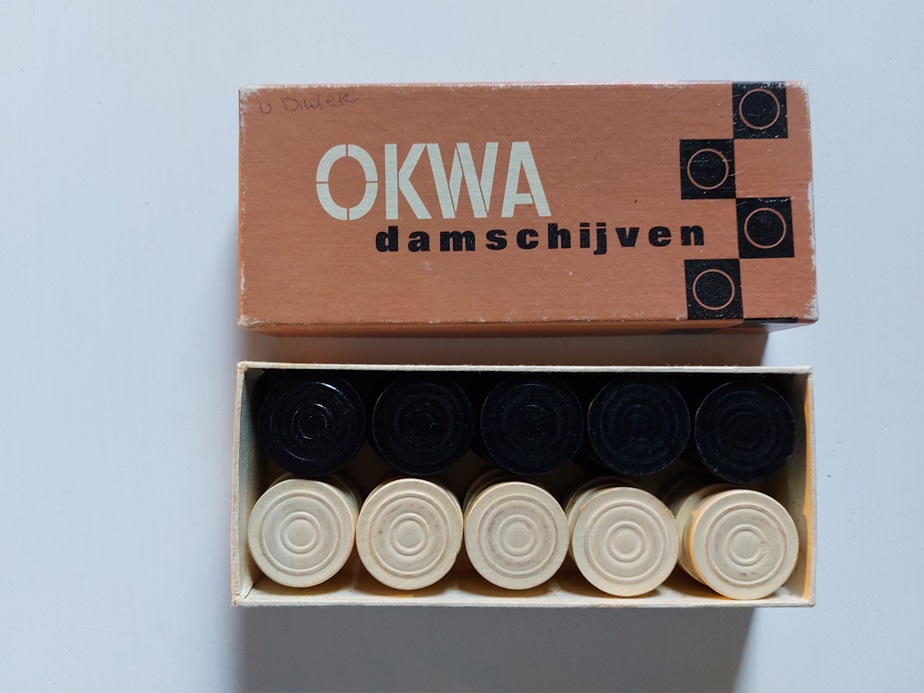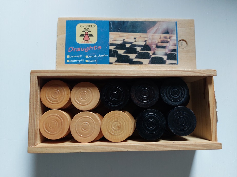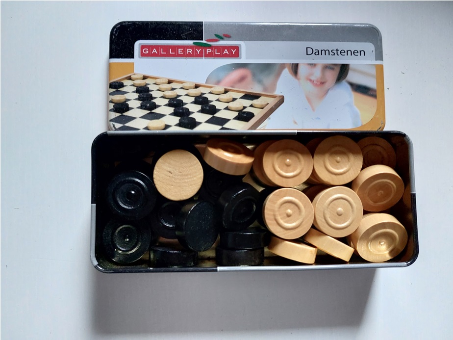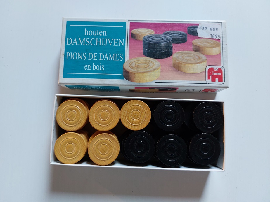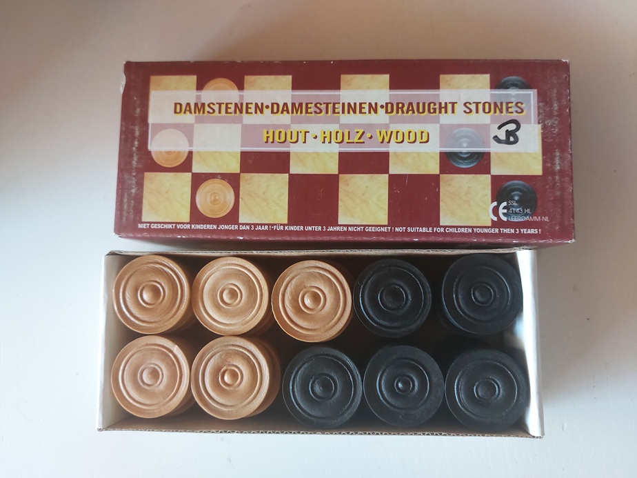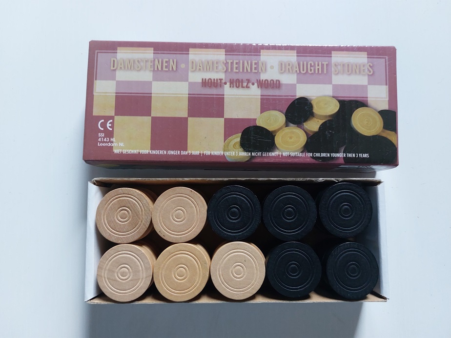 houten damschijven in kartonnen doosje |
