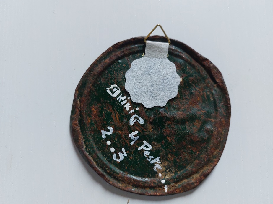 Jeu de Dame, beschilderd deksel van conservenpotje |